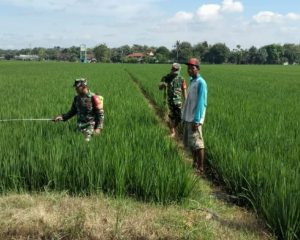 Antisipasi Serangan Hama, Babinsa Dampingi Petani Semprotkan Insektisida di Sawah