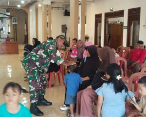 Jabarexpose.com._Surakarta,- Babinsa Joyotakan Koramil 03/Serengan Kodim 0735 Surakarta Serma Rumbawa menghadiri dan membantu kegiatan Posyandu Balita bertempat di Aula Kelurahan Joyotakan Jl. Rebab, Serengan Kota