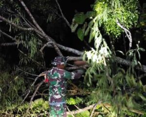 Jabarexpose.com._Boyolali. – Ketangguhan dan kepedulian Babinsa Koramil 12/Simo Kodim 0724/Boyolali Sertu Budi Utomo kembali diuji. Saat hujan deras disertai angin kencang mengguyur wilayah Kecamatan Simo