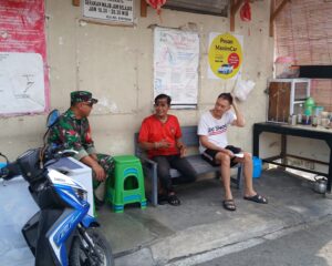 Jabarexpose.com._SURAKARTA. – Babinsa Kratonan Koramil 03/Serengan Kodim 0735/Surakarta Koptu Resbiyanto Pukul 08.30 wib melaksanakan Kegiatan Komunikasi Sosial dengan Bapak Budi Raharjo selalu etua Rt. 2/3