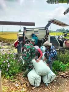 Jabarexpose.com._Boyolali-. Tiga (3) Anggota Koramil 13/Nogosari Kodim 0724/Boyolali yang dipimpin oleh Batuud Koramil 13/Nogosari Peltu Suyatno melaksanakan kegiatan pendampingan dan pemantauan serap gabah oleh Bulog di lahan pertanian Desa Jeron Kecamatan Nogosari Kabupaten Boyolali, Selasa (25/03/2025).