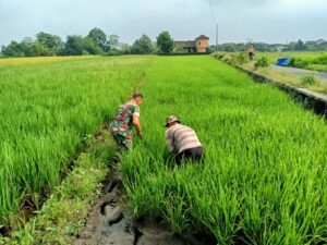 Babinsa Sawit Bantu Petani Desa Tegalrejo Rawat Padi