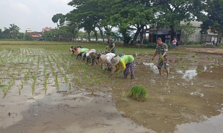 Danramil dan Anggota Turun Sawah, Bantu Petani Tanam Padi