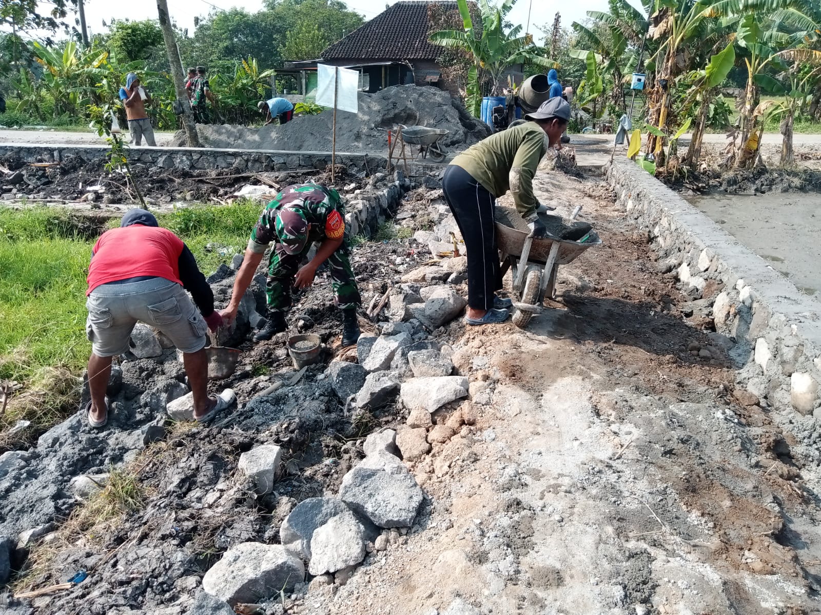 “ Hari ini kita akan bekerja sama memperbaiki talud jalan ini agar lebih aman dan nyaman untuk dilewati. Mari kita tunjukkan semangat gotong-royong kita yang telah menjadi kekuatan bersama dalam membangun desa kita,” ujar Babinsa dengan penuh semangat.