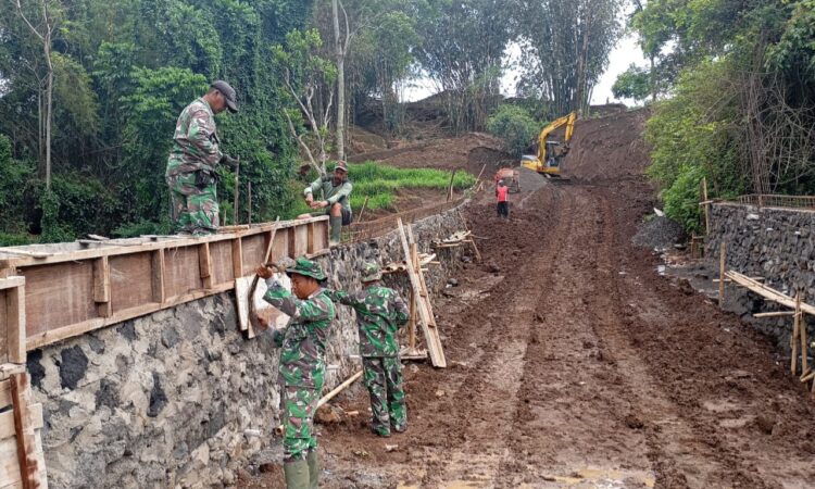 Jabarexpose.com._Boyolali. โ Cuaca cerah di Desa Candi, Kecamatan Ampel, Kabupaten Boyolali, menjadi semangat tersendiri bagi anggota Satuan Tugas (Satgas) TNI Manunggal Membangun Desa (TMMD) Sengkuyung Tahap IV Kodim 0724/Boyolali. Sejak pagi, prajurit TNI bersama warga setempat tampak bahu-membahu mempercepat pembangunan talud di sepanjang jalan desa, Minggu (26/10/25).