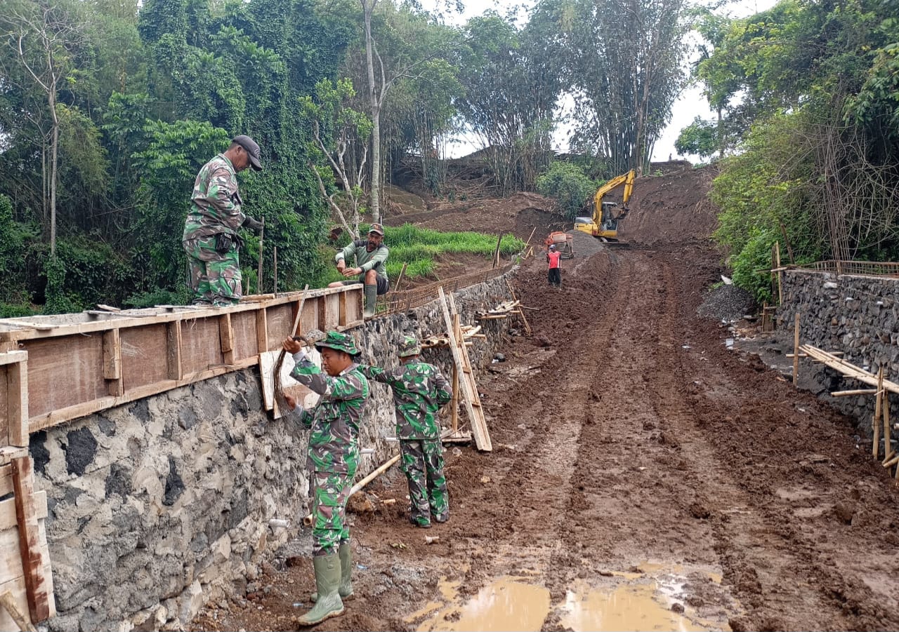 Jabarexpose.com._Boyolali. โ Cuaca cerah di Desa Candi, Kecamatan Ampel, Kabupaten Boyolali, menjadi semangat tersendiri bagi anggota Satuan Tugas (Satgas) TNI Manunggal Membangun Desa (TMMD) Sengkuyung Tahap IV Kodim 0724/Boyolali. Sejak pagi, prajurit TNI bersama warga setempat tampak bahu-membahu mempercepat pembangunan talud di sepanjang jalan desa, Minggu (26/10/25).