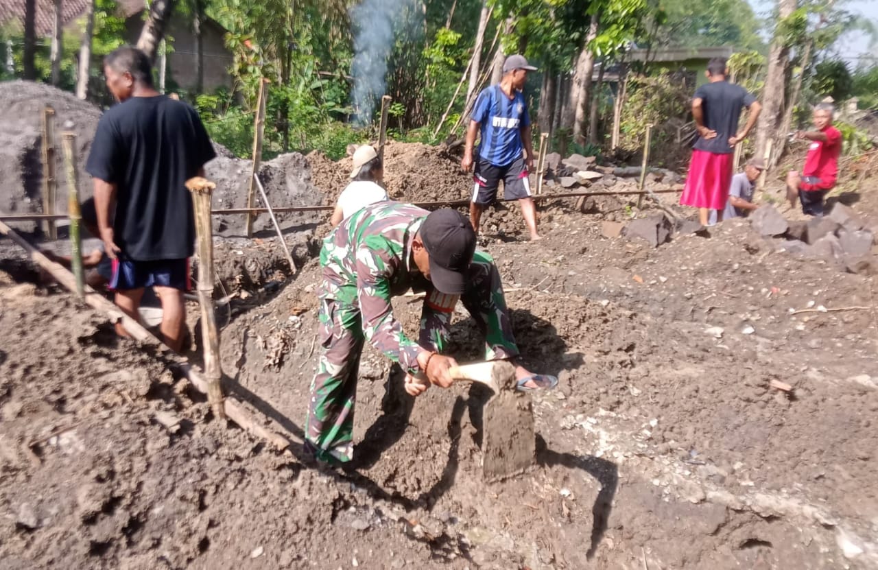 Pada kegiatannya tersebut Babinsa ikut membantu menggali tanah pondasi rumah, ini merupakan salah satu wujud kepedulian Babinsa kepada warganya dalam mengatasi kesulitan dengan hadir di tengah-tengah masyarakat.