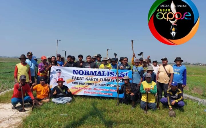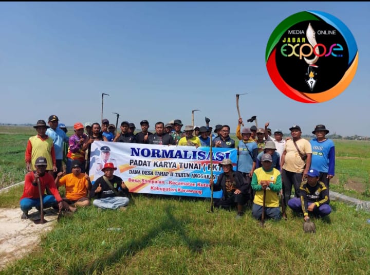 Jabarexpose.com._Karawang.- Melalui anggaran Dana Desa Tahap II Tahun 2024 Pemerintah Desa Sampalan Kecamatan Kutawaluya Kabupaten Karawang bersama aparatur desa dan warga melaksanakan kegiatan Normalisasi Padat Karya Tunai (PKT) bersihkan saluran air, Minggu (4/8/2024).