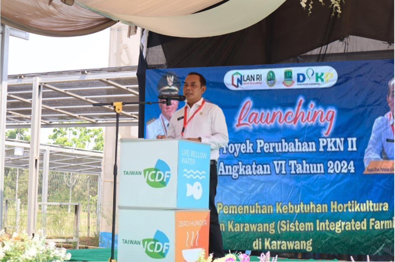 Dinas Pertanian dan Ketahanan Pangan Kabupaten Karawang adakan kegiatan Launching proyek perubahan strategi pemenuhan hortikultura di Karawang melalui SINDEN KARAWANG (sistem integtrated farming) di kabupaten Karawang bersama staf ahli Wakil Mentri pertanian Nandang Sudrajat dan tamu undangan lainnya. yang bertempat di TTM ( Taiwan tekhnical mission) jln . kampung Surupan desa tamanmekar Kecamatan pangkalan kabupaten karawang, Jum’at (16/08/2024).