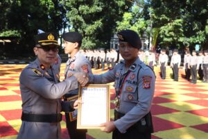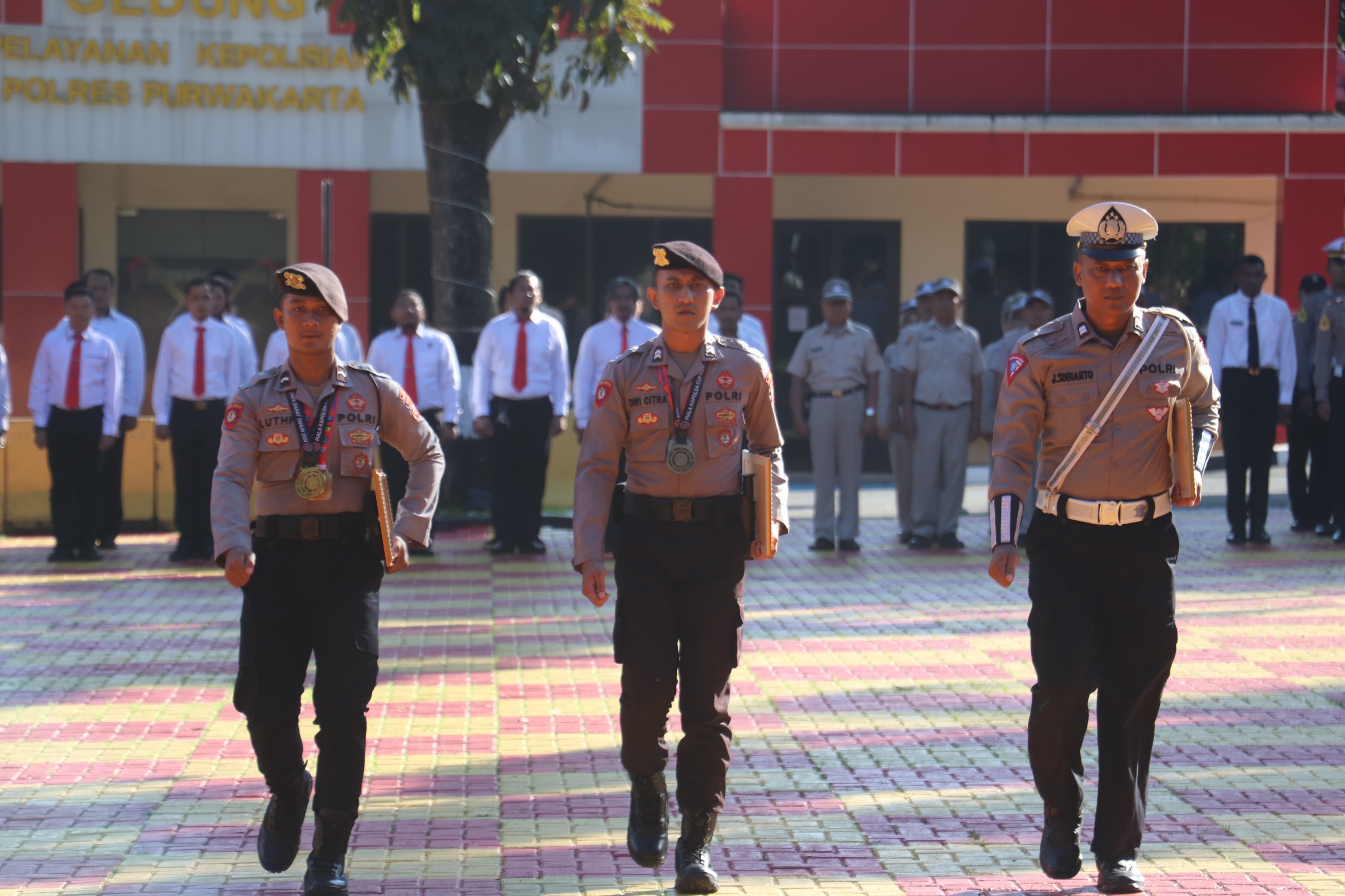 Penyerahan penghargaan tersebut diserahkan Kapolres Purwakarta, AKBP Edwar Zulkarnain melalui Wakapolres, Kompol Ricky Ardipratama usai apel pagi, Pada Senin, 8 Juli 2024.